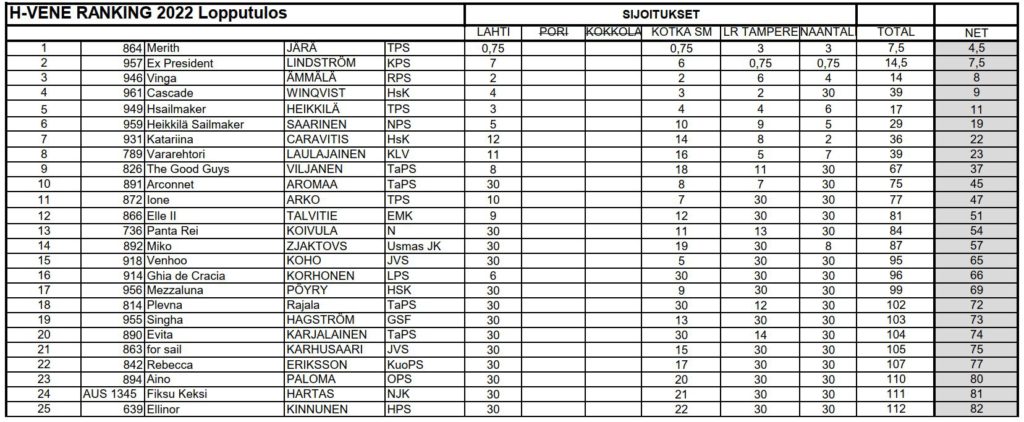 Ranking sarjan voittoon purjehti FIN 864 Teppo Järä, miehistönään Ville Ruusunen, Mikko Laine/Markus Söderlund sekä Roosa Juup 4,5:llä pisteellä. Ranking voitto oli Järän Venekunnalle toinen perättäinen ja se oli jo varmistettu ennen tätä viimeistä osakilpailua.