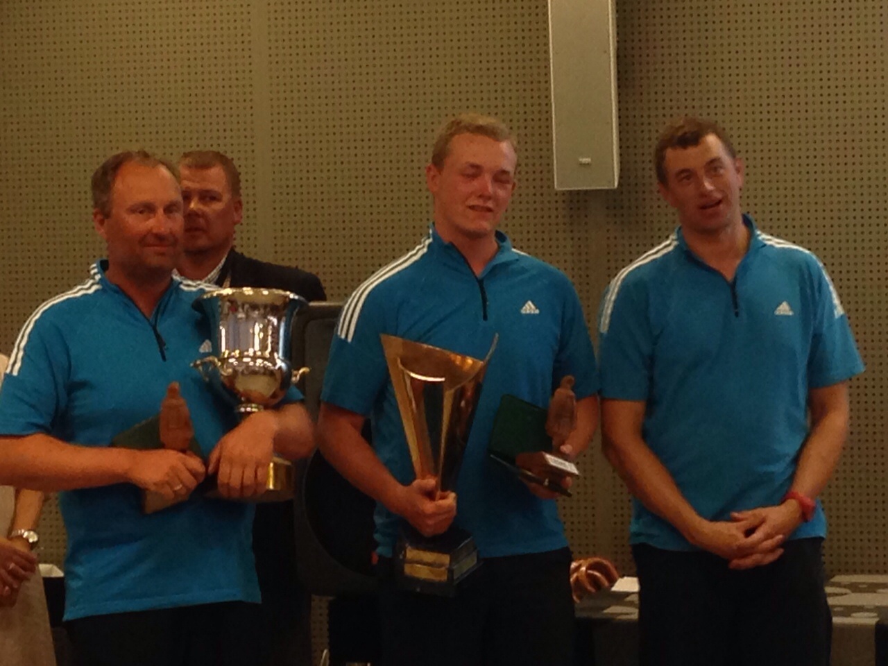 Maailmanmestaruuskilpailut päättyivät perjantaina 8.8. DEN-597 (Claus Höj Jensen, Dahl Hansen, Karl Kristiansen) voitontuuletukseen. Hopealle SWE- 559 Henrik Jörhov ja pronssille SWE-591 Henrik Edman.